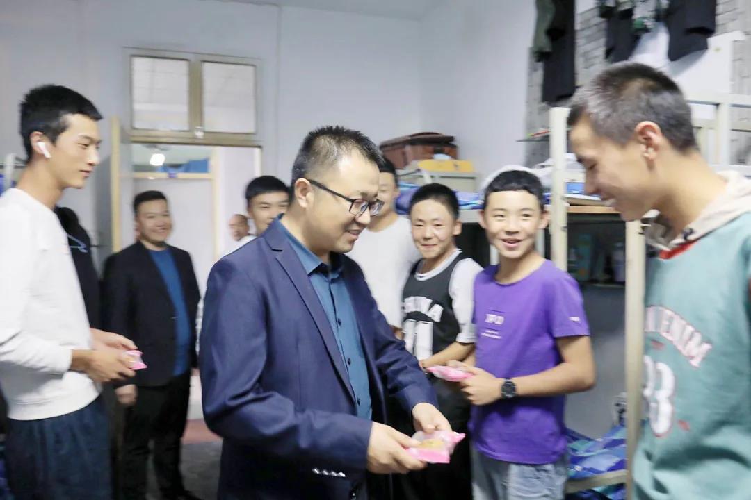 晚上7点30分,学生处处长程勇、副处长孙凤辉、年级主任程鑫及学校值班组老师深入每一栋学生公寓和宿舍。代表校领导对不能回家的学生带来节日的慰问。为每位学生送上月饼,与学生谈心,同学们收到老师关心后,脸上也洋溢出发自内心的笑容,道谢的同时也向老师们送上最真挚的中秋祝福。中秋月圆之际,深处异乡,月饼虽小,也希望同学们能感受到学校领导和老师们的关心与祝福,过一个幸福欢乐的国庆中秋节。