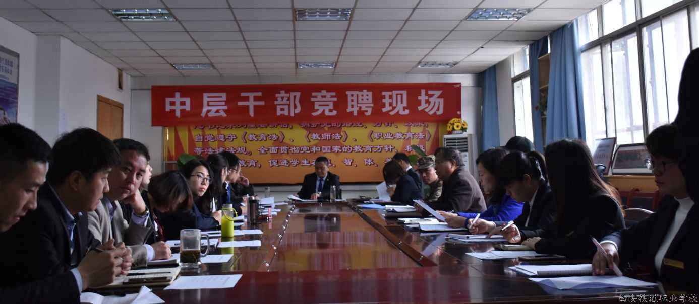 3月24日上午,西安铁道职业学校2017“中层干部暨部门负责人竞聘大会”在行政楼二楼会议室举行。五名候选人参加了此次竞聘,校委会成员及相关部门负责人担任评委。竞聘会议由校办主任张敏主持,校长助理任东解读了学校《中层干部暨部门负责人竞聘上岗实施办法》。