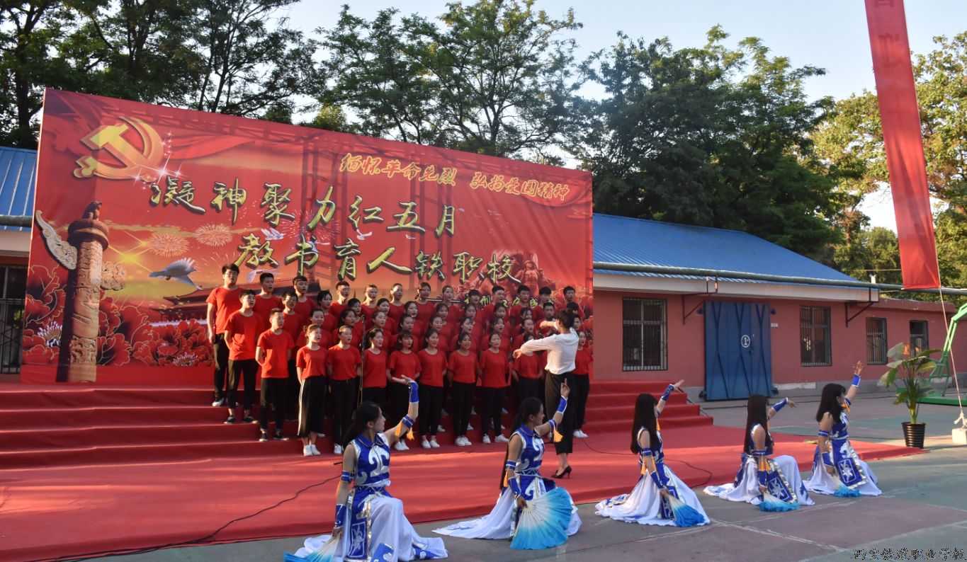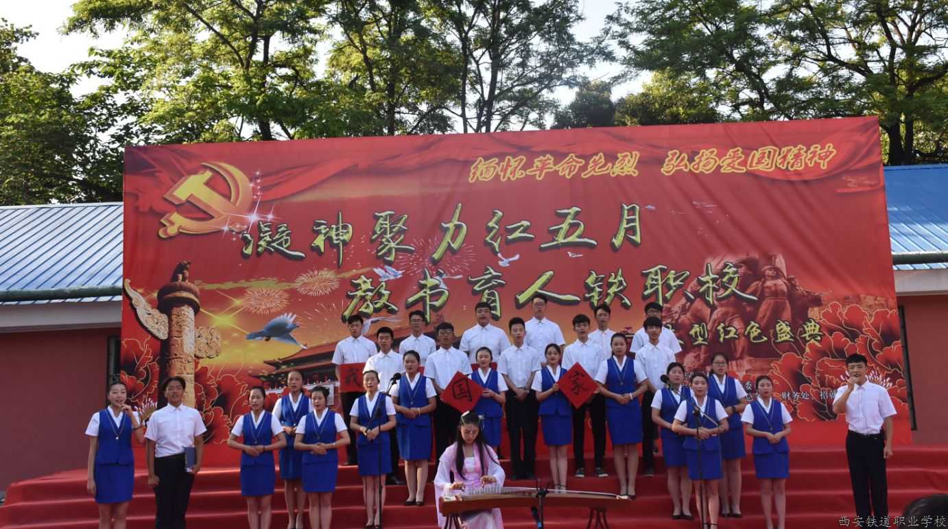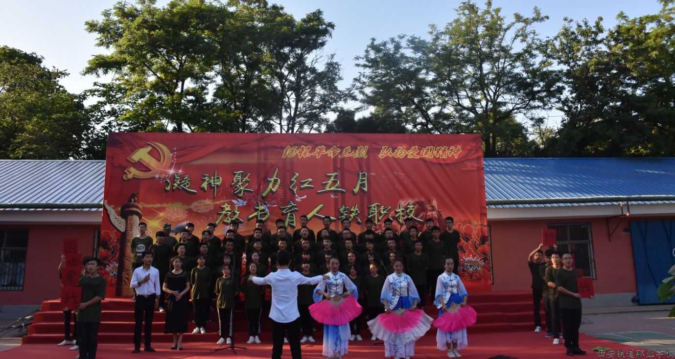 2017年5月25日下午,在党的十九大即将召开和西安市职教月如火似荼开展之际,由共青团西安铁道职业学校委员会承办的“凝神聚力红五月、 教书育人铁职校”大型师生合唱在校篮球场举行,全校67个教学班和教职工“百人合唱团”共同登台演绎了这场红色盛典,朝阳社区及周边群众一同聆听了这些耳熟能详的爱国歌曲,大家纷纷表示仿佛回到了激情燃烧的岁月,令人热血沸腾、心潮澎湃。