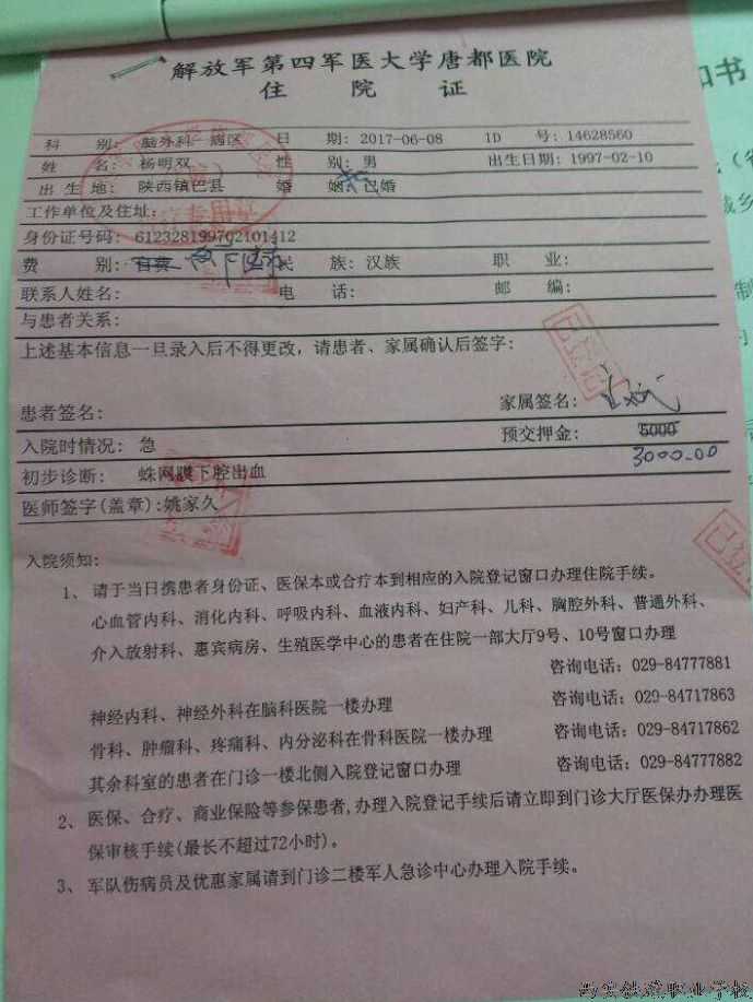 6月7日因感觉头晕、头部剧痛,伴随恶心呕吐,送往就近航天医院拍片,确诊为脑出血,后紧急送往唐都医院,确诊为血脉瘤,因肿瘤压迫脑血管而导致高血压并引起脑出血。经专家会诊后,建议手术治疗!