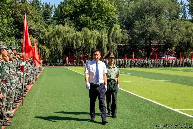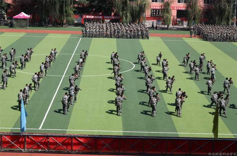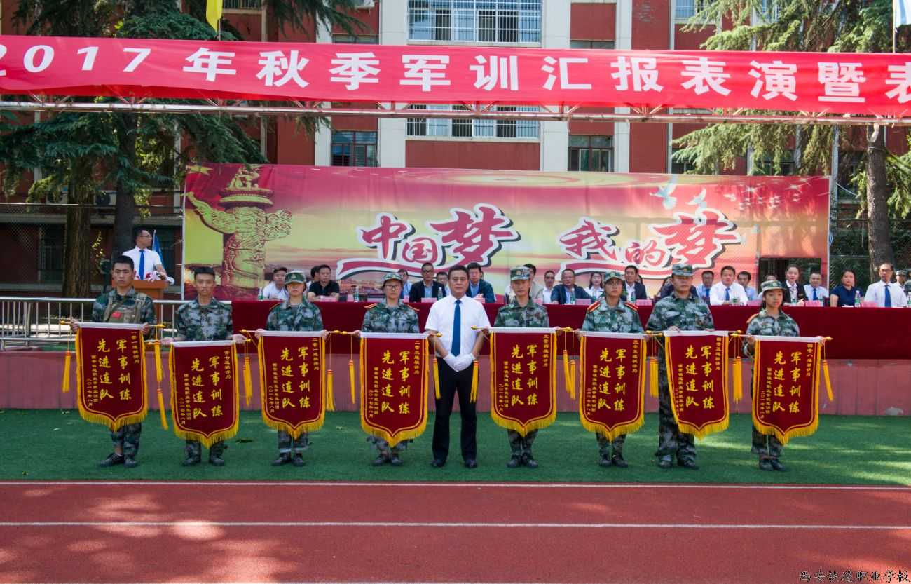 西安铁道职业学校2017年秋季新生军训汇报表演暨表彰大会 版权所有:西安铁道职业学校 9月6日上午,2017级秋季新生军训汇报表演及阅兵仪式在足球场隆重进行,4000多名英姿勃发的新生接受了检阅。校长助理任东主持汇报表演。 在威武庄严的迎军旗仪式之后,校长刘爱民和军训负责人孙凤辉一同检阅了士气高昂的新生军训方队。 在“军训团”团旗的引领下,分列式开始。伴随着雄壮的《中国人民解放军军歌》,由军训新生组成的40个方队以矫健飒爽的行进军姿通过主席台接受检阅,向集团领导和校领导展示他们的军事训练成果。 接着军训教官和受训新生进行了军事科目汇报表演:《花样列队》、《千人军体拳》、《三声三相》、《擒拿格斗、战术表演》,团体军体拳表演刚整劲健,教官们的军事训练表演功夫一流,同学们的人员解救模拟表演逼真生动。 团委书记王斌宣读了“优秀连队”、“优秀教官”、“优秀学员”、“训练标兵”名单。校领导先进集体和先进教官颁发了锦旗和证书。 校长刘爱民代表校委会向承担军训任务的全体教官表示衷心的感谢和崇高的敬意。向积极参加军训并胜利坚守到底的全体同学们致以亲切的问候和热烈的祝贺。他指出,受训新生在军训教官的精心组织和指导下,发扬不畏苦累的精神,克服困难,圆满完成了预定科目的学习和训练,掌握了一定的军事知识和技能,培养了学子纪律严明、顽强拼搏的好传统。训练是刻苦的,成绩是优秀的。结合将来的学习生活,他对军训新生提出了四点要求:一、要笃实怀远;二、要质朴尚德;三、要自强自立;四、要团结友爱。他号召同学们传承和延续铁道精神与意志,成为祖国建设的优秀人才。 上一篇:西安铁道职业学校2017-2018学年第一学期全体教职员工大会顺利召 下一篇:西安铁道职业学校第33个教师节慰问信